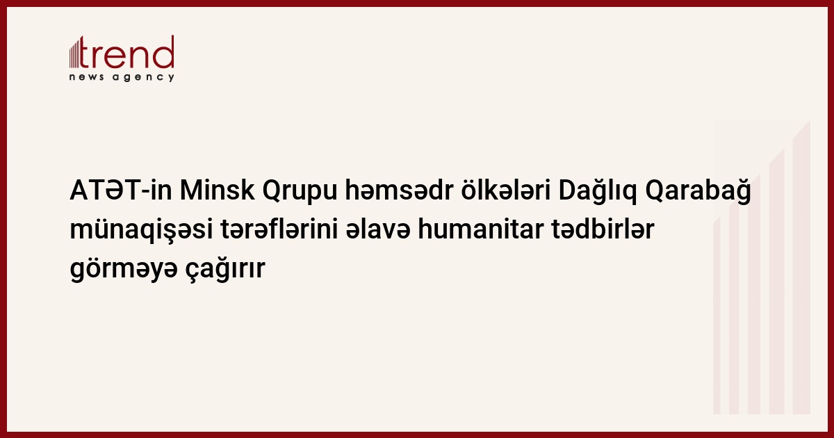 ATƏT-in Minsk Qrupu həmsədr ölkələri Dağlıq Qarabağ münaqişəsi tərəflərini əlavə humanitar tədbirlər görməyə çağırır.