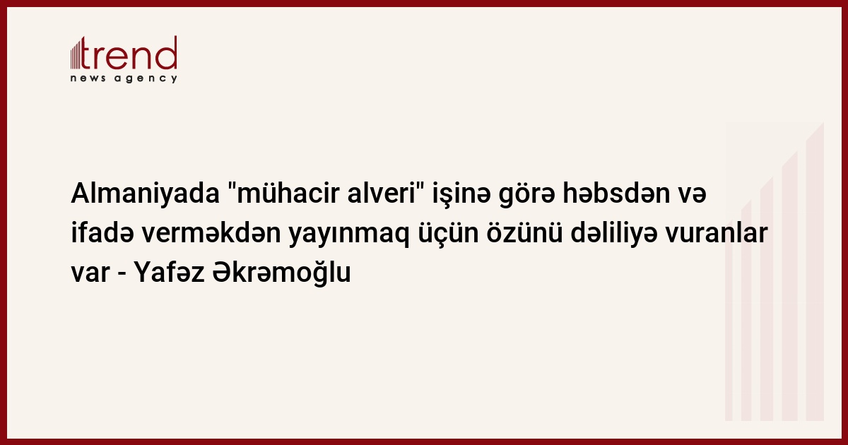 Almaniyada "mühacir alveri" işinә görә hәbsdәn vә ifadә vermәkdәn yayınmaq üçün özünü dәliliyә vuran, dәli statusu almaq üçün könüllü dәlixanaya girmәk istәyәnlәr var.
