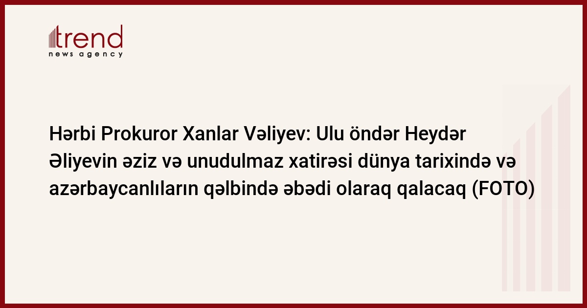 Çıxışının sonunda Hərbi prokuror Xanlar Vəliyev bildirdi ki, mənalı və fədakar həyatı, çoxşaxəli zəngin fəaliyyəti ilə "Dünyanın ən böyük azərbaycanlısı" adını qazanmış ulu öndər Heydər Əliyevin əziz və unudulmaz xatirəsi dünya tarixində və azərbaycanlıların qəlbində əbədi olaraq qalacaqdır.