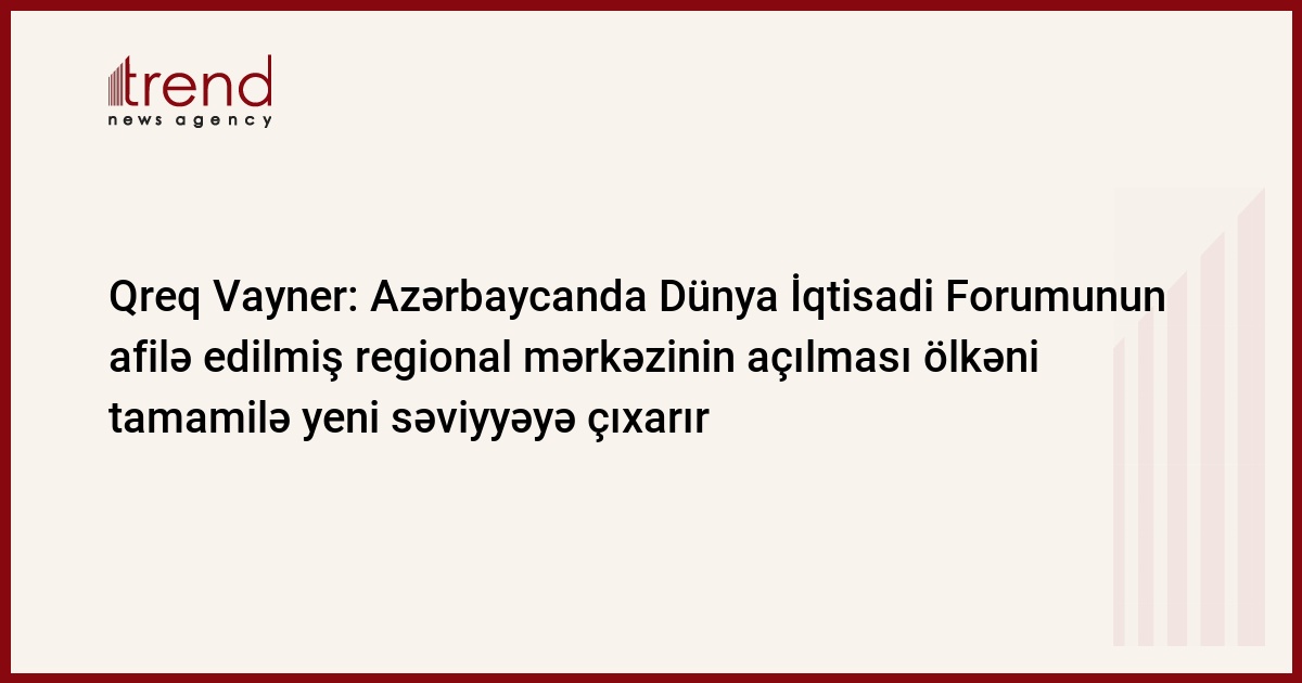 O bildirib ki, Azərbaycan regionda ən sabit ölkələrdən biridir və Dünya İqtisadi Forumunun afilə edilmiş regional mərkəzinin açılması ölkənin liderliyini möhkəmləndirəcək:
