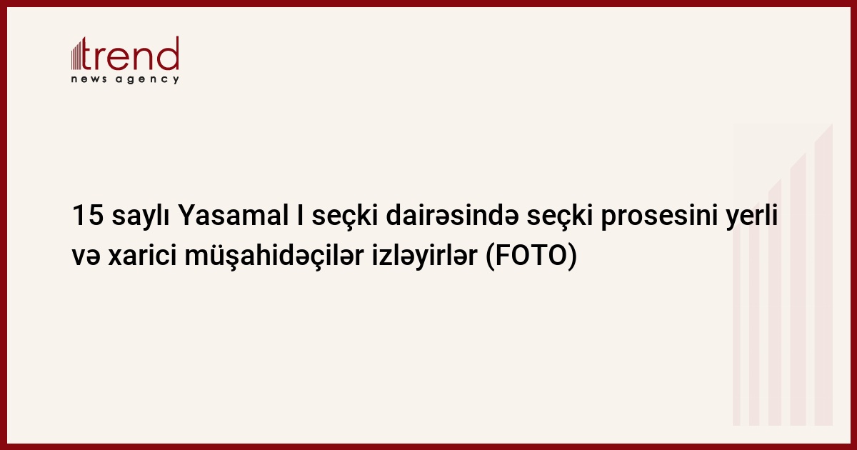 Fevralın 9-u saat 8:00-da Azərbaycanın hər yerində olduğu kimi, 15 saylı Yasamal birinci seçki dairəsinin əhatə etdiyi seçki məntəqələrində də səsvermə qanunvericiliyə uyğun olaraq başlayıb.