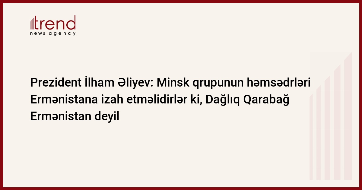 ATƏT-in Minsk qrupunun həmsədrləri Ermənistana izah etməlidirlər ki, Dağlıq Qarabağ Ermənistan deyil. Heç bir ölkə Dağlıq Qarabağı tanımayıb.