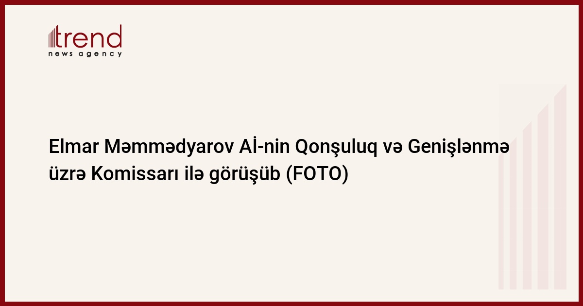 2020-ci ilin 18 fevral tarixində Xarici İşlər naziri Elmar Məmmədyarov Brüsselə işçi səfəri çərçivəsində Aİ-nin Qonşuluq və Genişlənmə üzrə Komissarı Oliver Varheyli ilə görüşüb.
