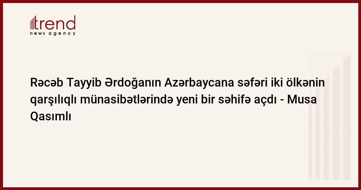 Türkiyə Respublikasının Prezidenti Rəcəb Tayyib Ərdoğanın Azərbaycana səfəri iki ölkənin qarşılıqlı münasibətlərində yeni bir səhifə açdı.