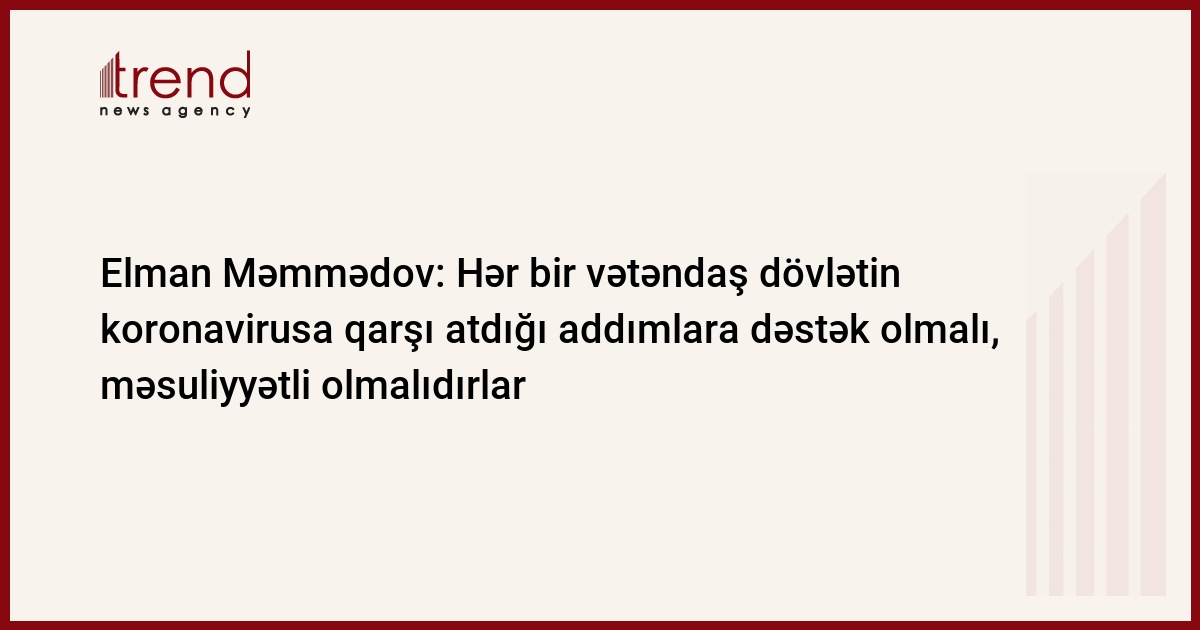 Hər bir vətəndaş dövlətin koronavirusa qarşı atdığı addımlara dəstək olmalı, məsuliyyətli olmalıdırlar.