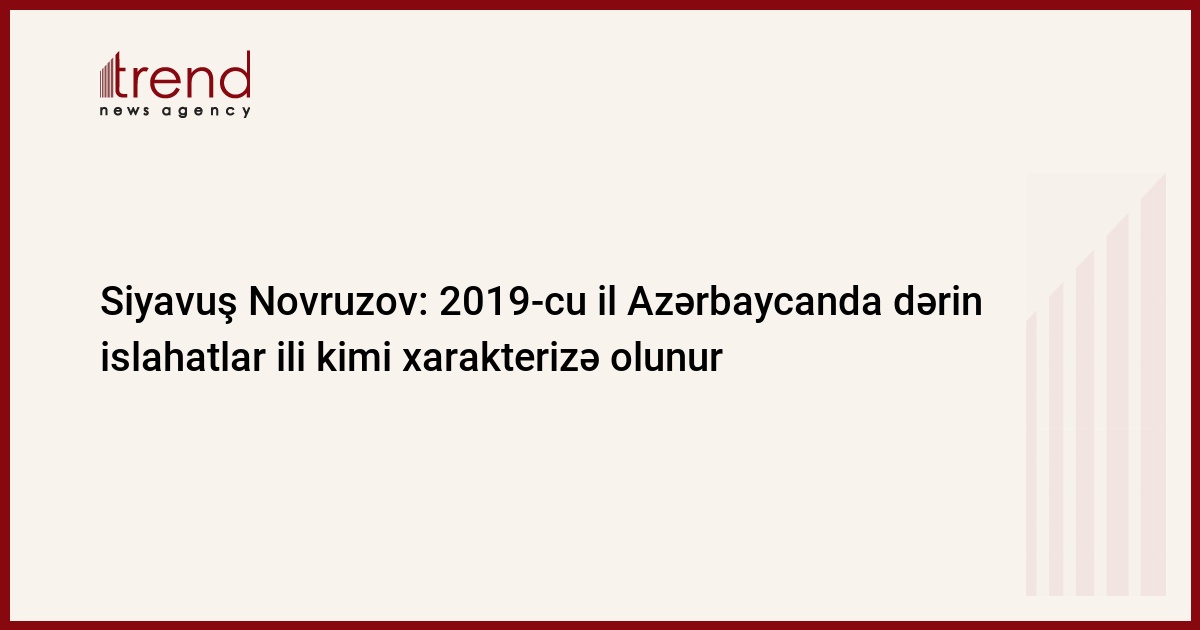 2019-cu il Azərbaycanda Prezident İlham Əliyevin rəhbərliyi altında dərin islahatlar ili kimi xarakterizə olunur.