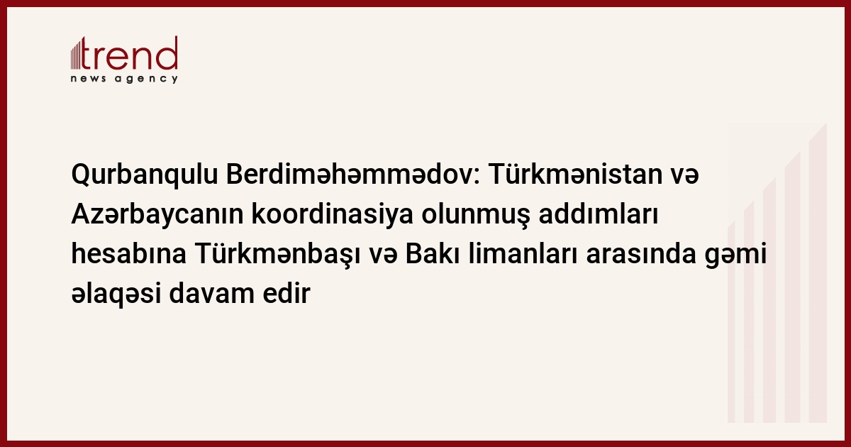 "Qeyd etmək istəyirəm ki, Türkmənistan və Azərbaycanın koordinasiya olunmuş addımları hesabına Xəzər dənizində Türkmənbaşı və Bakı limanları arasında gəmi əlaqəsi davam edir. Bu, böyük geoiqtisadi məkanda yük daşımaları baxımından çox vacib nəqliyyat dəhlizidir. Regional tərəfdaşlarla birgə fəaliyyət nəticəsində Şərq-Qərb və Şimal-Cənub nəqliyyat dəhlizlərinin normal fəaliyyəti təmin edilib".