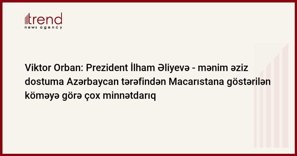 Trend-in məlumatına görə, bunu Macarıstanın Baş Naziri Viktor Orban aprelin 10-da Türk Şurasının videokonfrans vasitəsilə keçirilən fövqəladə Zirvə görüşündə çıxışı zamanı deyib.