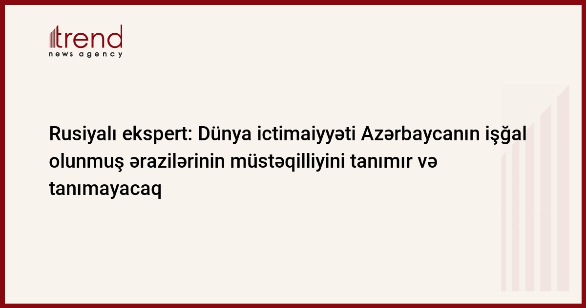 Bunu Trend-ə rusiyalı ekspert Qalina Niyazova deyib. Onun sözlərinə görə, ilk növbədə, dünya ictimaiyyəti işğal olunmuş bu torpaqların müstəqilliyini tanımır və tanımayacaq: