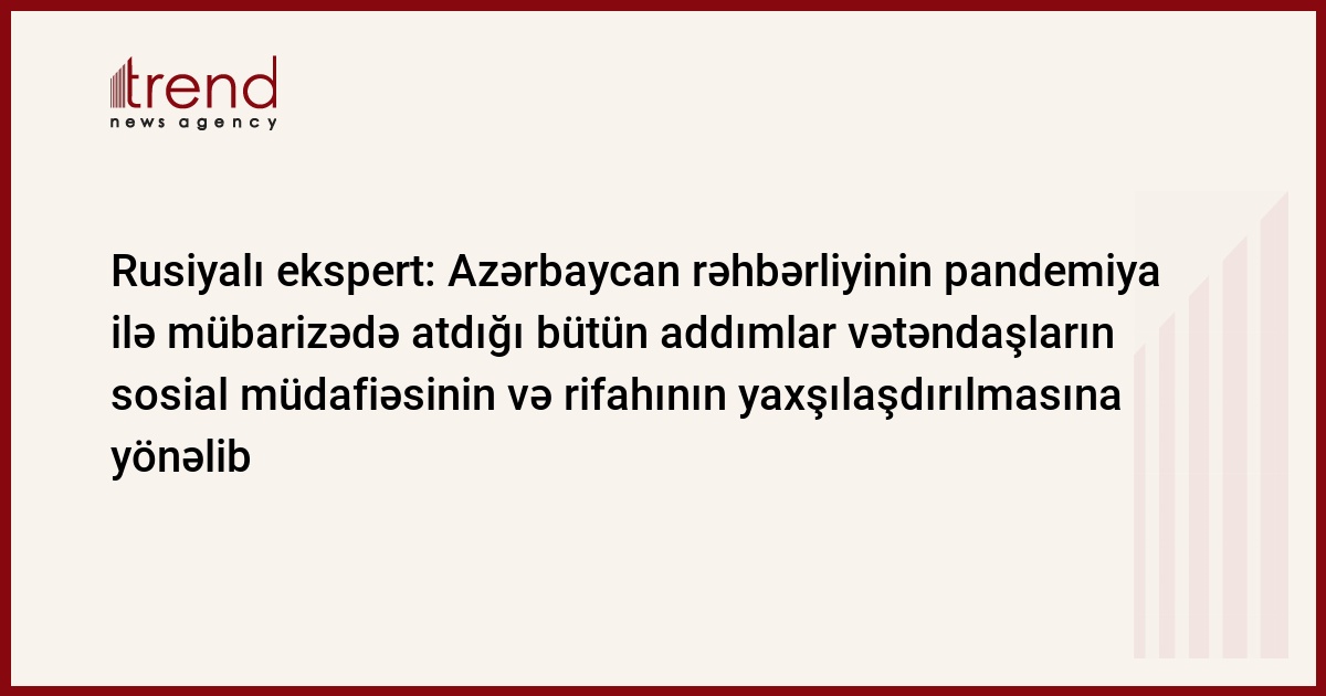 Rusiya ilə Azərbaycanın gördüyü tədbirlərə toxunan ekspert qeyd edib ki, koronavirusun post-sovet məkanında Avropa ölkələrindən daha gec yayıldığını nəzərə almaq lazımdır: