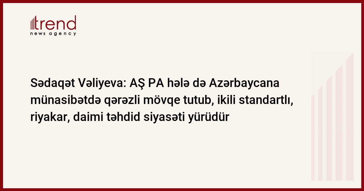 Sədaqət Vəliyeva diqqətə çatdırıb ki, AŞ PA bu ikili standartlı, qərəzli siyasətin hara apardığını və nə ilə nəticələnə biləcəyini hələ də anlaya bilmir: