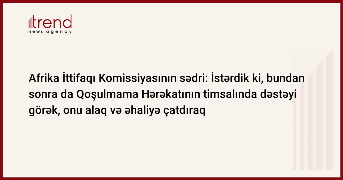 Trend-in məlumatına görə, bunu Afrika İttifaqı Komissiyasının sədri Musa Faki Mahamat Prezident İlham Əliyevin təşəbbüsü ilə Qoşulmama Hərəkatının Təmas Qrupu formatında mayın 4-də videokonfrans vasitəsilə koronavirusla mübarizəyə həsr olunmuş “COVID-19-a qarşı birlikdəyik” mövzusunda Zirvə görüşündə çıxışı zamanı deyib.