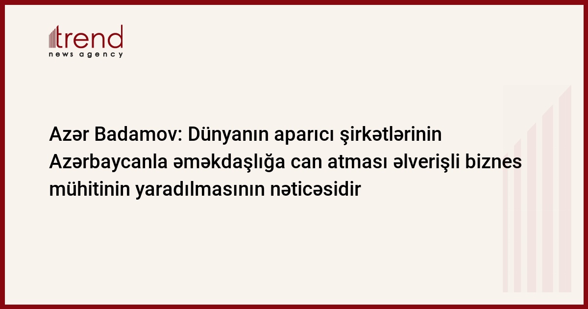 Azər Badamov əlavə edib ki, Azərbaycan yeni texnologiyalara və innovasiyalara açıqdır: