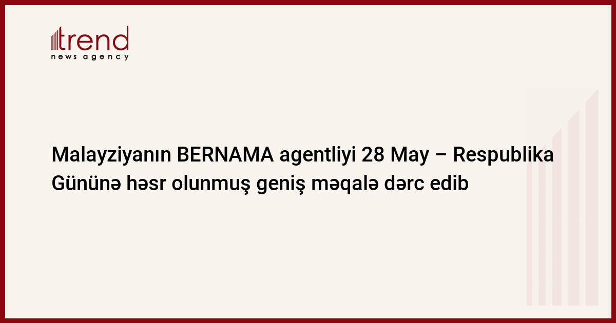 Malayziyanın BERNAMA dövlət informasiya agentliyi Azərbaycanın 28 May – Respublika Gününə həsr olunmuş geniş məqalə dərc edib.