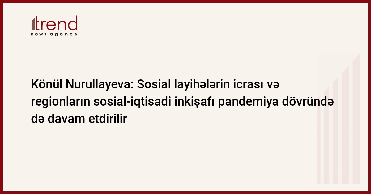 Sosial layihələrin icrası və regionların sosial-iqtisadi inkişafı pandemiya dövründə də davam etdirilir.