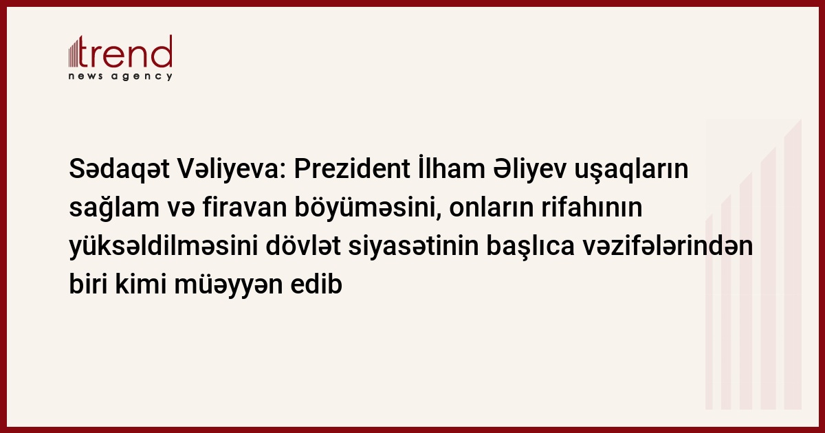 Sədaqət Vəliyeva bildirib ki, ölkəmizdə uşaqlar daim diqqət mərkəzində olublar: “Ulu öndər Heydər Əliyev uşaqlara dövlət səviyyəsində qayğını həmişə diqqətdə saxlayırdı. Prezident İlham Əliyev də uşaqların sağlam və firavan böyüməsini, onların rifahının yüksəldilməsini dövlət siyasətinin başlıca vəzifələrindən biri kimi müəyyən edib. Eləcə də I Vitse-prezident Mehriban xanım Əliyevanın da bu sahədəki fəaliyyəti xüsusi qeyd olunmalıdır”.