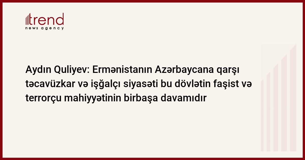 Onun sözlərinə görə, Prezident İlham Əliyevin ölkəmizə qarşı təcavüz tarixi, torpaqlarımızın parça-parça qoparılması və bu işdə Azərbaycanın tarixi rəhbərlikləri tərəfindən yol verilmiş səhvlər barədə söylədiyi faktlar əhəmiyyətlidir və dərin siyasi, elmi diskussiyalar doğurmaq gücündədir: "Ermənistanın Azərbaycana qarşı təcavüzkar və işğalçı siyasəti bu dövlətin faşist və terrorçu mahiyyətinin birbaşa davamıdır. Ermənistanın siyasətində faşist və terrorçuluq əlamətləri bu dövlətin əslində dünyanın yaxşı tanıdığı terror təşkilatlarının fəal dəstəyi və himayəsi ilə qurulmasından irəli gəlib. 2018-ci ilə qədər özünü daha qabarıq göstərən faşist - terror davranışları təəssüf ki, bu gün də davam edir. Hitler faşizmi ilə fəal əməkdaşlıq etmiş şəxslərin qəhrəmanlaşdırılması, ölkənin özündəki dövlət terroru faktlarının hələ tam araşdırılmaması bunu əyani şəkildə sübut edir".