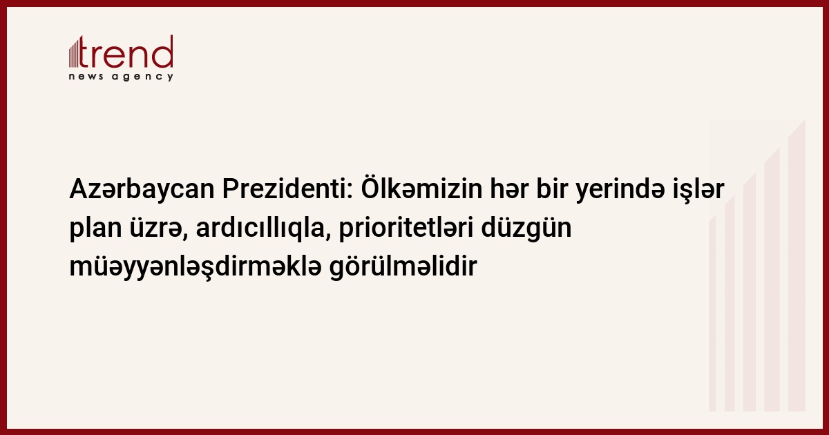 Ölkəmizin hər bir yerində işlər plan üzrə, ardıcıllıqla, prioritetləri düzgün müəyyənləşdirməklə görülməlidir.