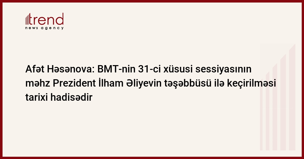 Bildiyiniz kimi BMT tarixində 30 xüsusi sessiya keçirilib və 31-ci xüsusi sessiya məhz Prezident İlham Əliyevin təşəbbüsü ilə keçirilir. Bu çox mühüm tarixi və qürurverici bir hadisədir. Bu hadisə BMT tarixində Azərbaycanın adını əbədiləşdirəcək və daim ölkəmiz xüsusi olaraq qeyd ediləcək”.