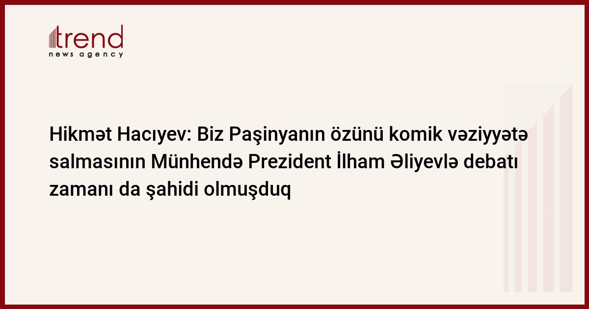 Bunu Trend-ə açıqlamasında Azərbaycan Prezidentinin köməkçisi - Prezident Administrasiyasının Xarici siyasət məsələləri şöbəsinin müdiri Hikmət Hacıyev deyib.