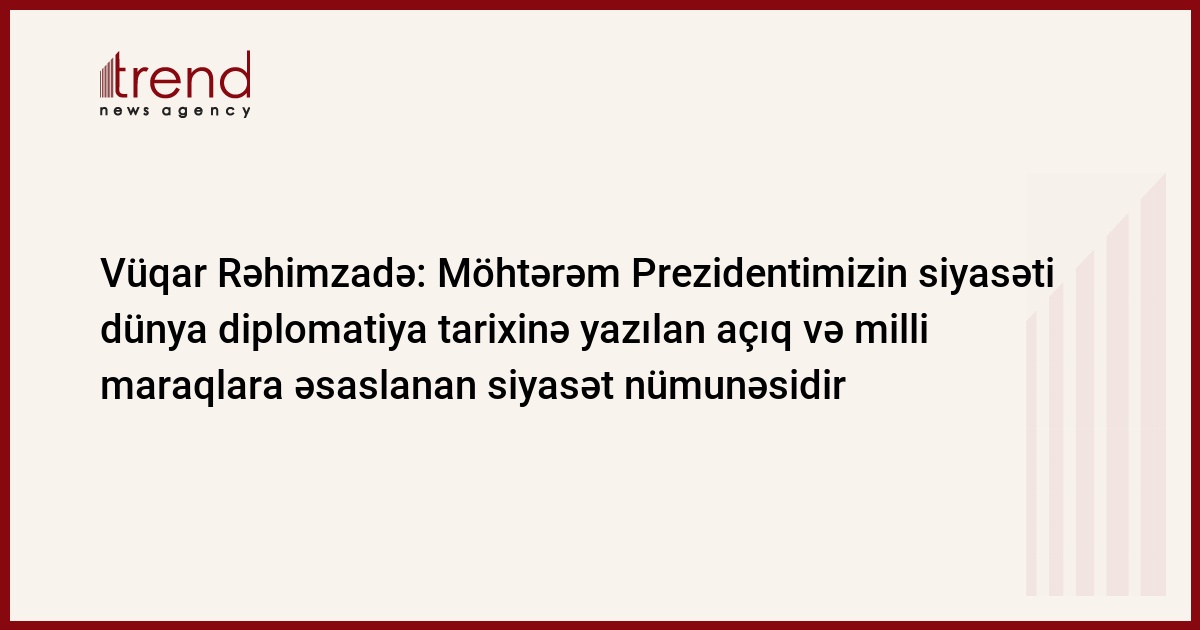 Bu fikirləri Yeni Azərbaycan Partiyası Siyasi Şurasının üzvü, «İki sahil» qəzetinin baş redaktoru, siyasi elmlər doktoru Vüqar Rəhimzadə Trend-ə bildirib.