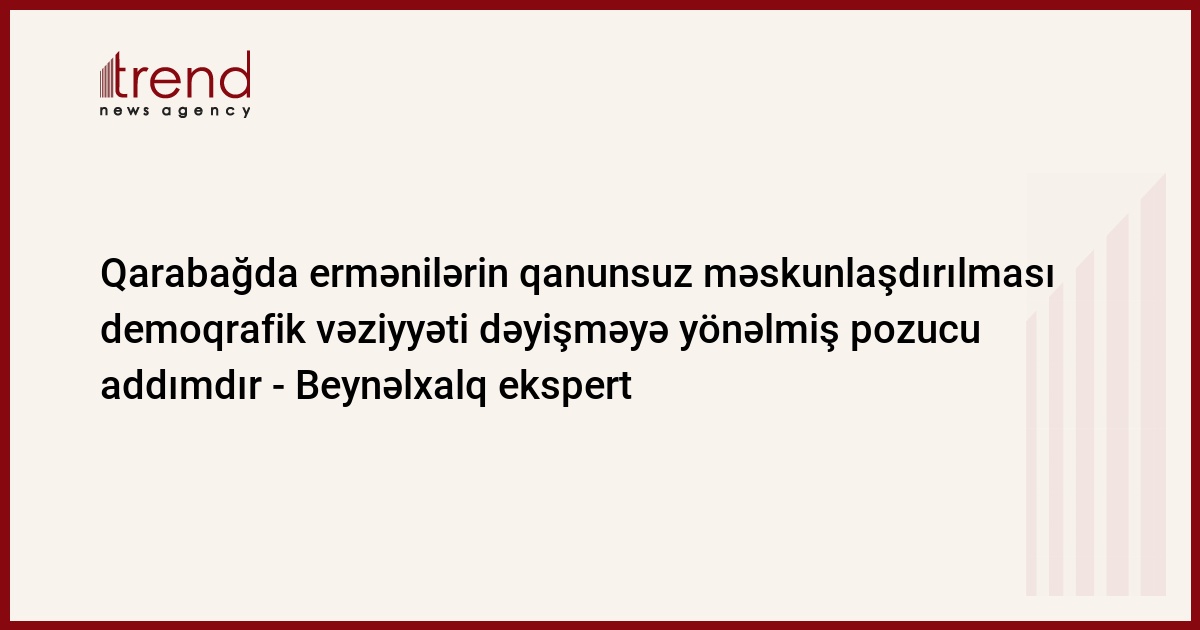 Ermənistanın Suriyadan və Livandan olan erməniləri Azərbaycanın işğal olunmuş Dağlıq Qarabağ ərazisinə və ətraf rayonlara köçürməsi beynəlxalq cinayət hesab olunur və Azərbaycan ərazilərində demoqrafik vəziyyəti dəyişməyə yönəlmiş pozucu addımdır.