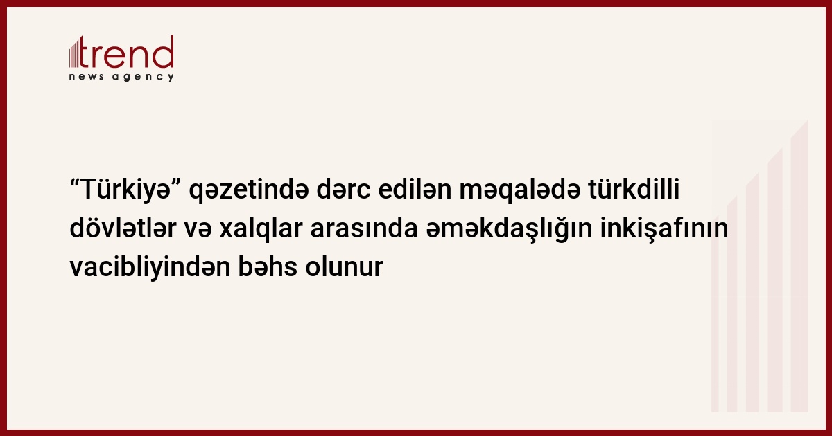 Qardaş ölkədə dərc olunan “Türkiyə” qəzetində müasir dövrdə türkdilli dövlətlər və xalqlar arasında əlaqələrin daha da möhkəmləndirilməsinin önəmindən bəhs edilir.