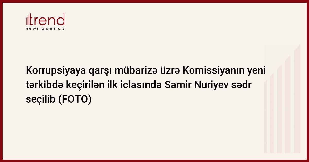 Trend xəbər verir ki, sentyabrın 15-də Azərbaycan Respublikasının Korrupsiyaya qarşı mübarizə üzrə Komissiyasının yeni tərkibdə ilk iclası videoformatda keçirilib. İclasda Azərbaycan Respublikası Prezidentinin Administrasiyasının rəhbəri Samir Nuriyev Komissiyanın sədri seçilib.