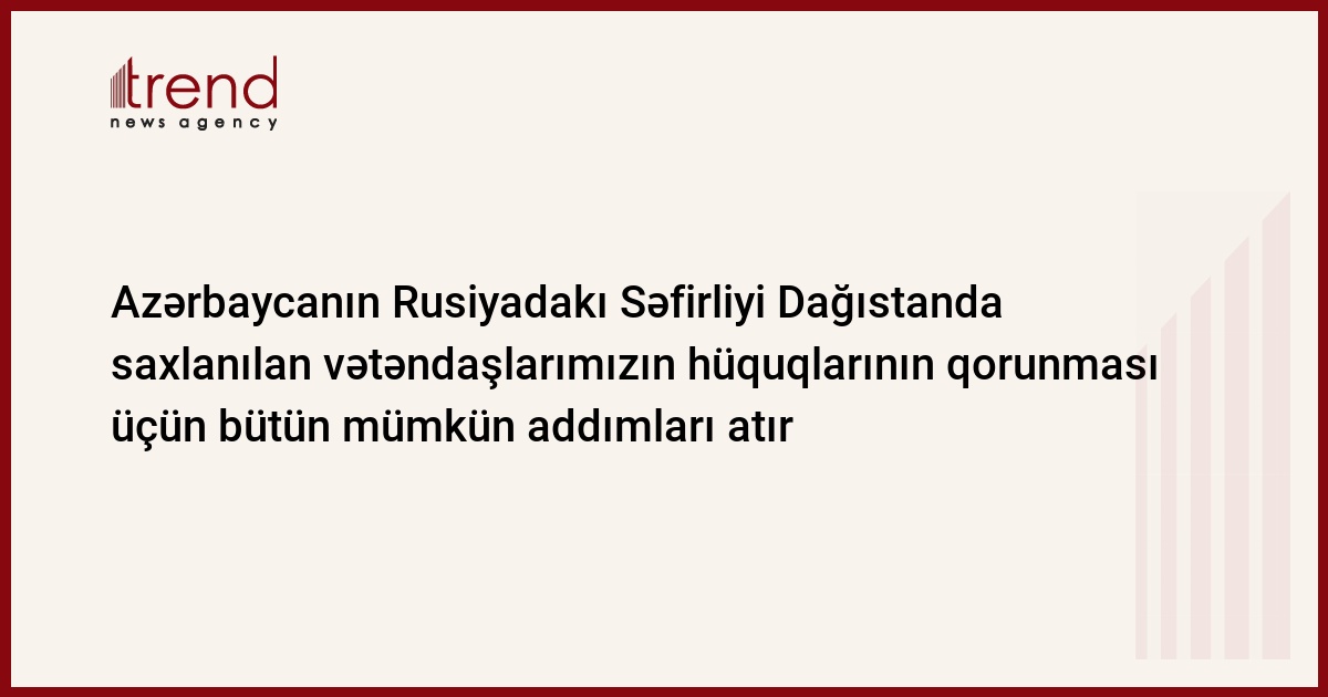 Azərbaycanın Rusiyadakı Səfirliyi öz imkanları və səlahiyyətləri çərçivəsində Dağıstanda saxlanılan vətəndaşlarımızın hüquqlarının qorunması üçün bütün mümkün addımları atır.
