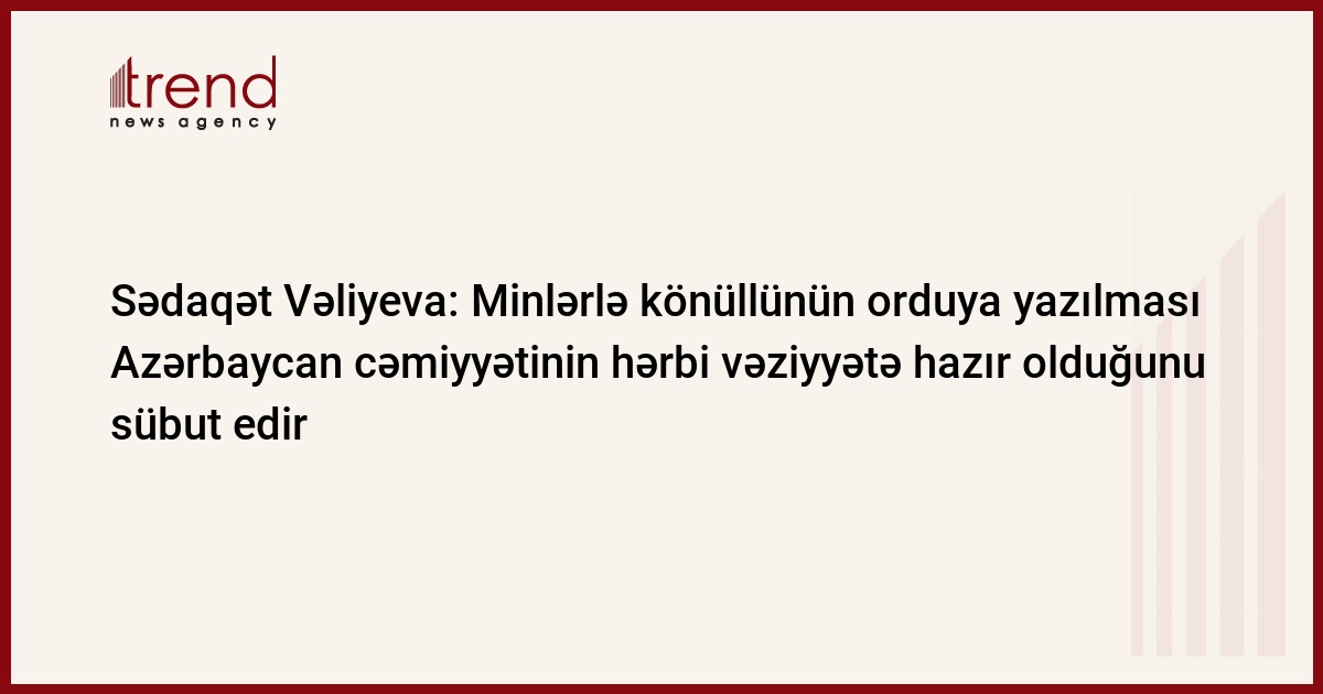 Ölkəmizdə hərbi vəziyyətin elan olunması yüksək hərbi hazırlıqla yanaşı, xalq, dövlət və ordu birliyindən xəbər verir. Bu eyni zamanda, erməni təxribatlarına adekvat cavabdır və yaşından, sosial statusundan asılı olmayaraq, minlərlə insanın könüllü kimi orduya yazılması faktı Azərbaycan cəmiyyətinin hərbi vəziyyətə hazır olduğunu sübut edir.