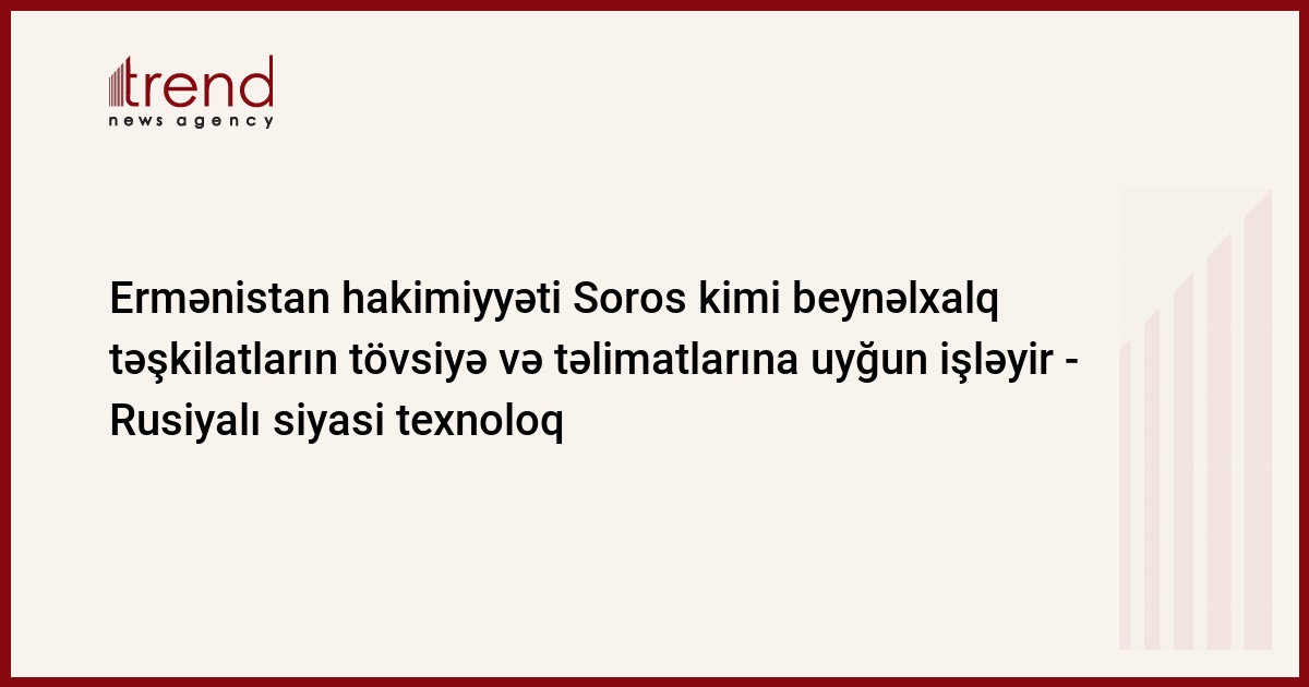 Ermənistanın indiki hakimiyyəti Soros Fondu və bu kimi beynəlxalq strukturların tövsiyə və təlimatlarına uyğun işləyir.