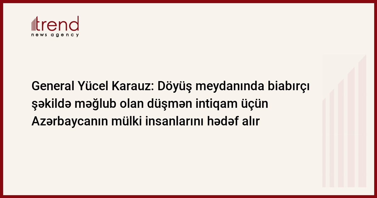 Döyüş meydanında biabırçı vəziyyətdə məğlub olan düşmənin intiqam almaq üçün Azərbaycanın mülki insanlarını hədəf aldığını diqqətə çatdıran general Yücel Karauz deyib: “Azərbaycanda dinc əhalinin hədəf alınmaq Ermənistanın barbarlığı, faşizm qaydaları ilə idarə olunmasının təsdiqidir. Əslində burada yenilik yoxdur. İşğalçı dövlət Azərbaycan torpaqlarını da eyni üsullarla qəsb edib. İndi bu qeyri-insani hərəkətləri öz işğalçılıq siyasətini qorumaq məqsədilə tətbiq edir”.