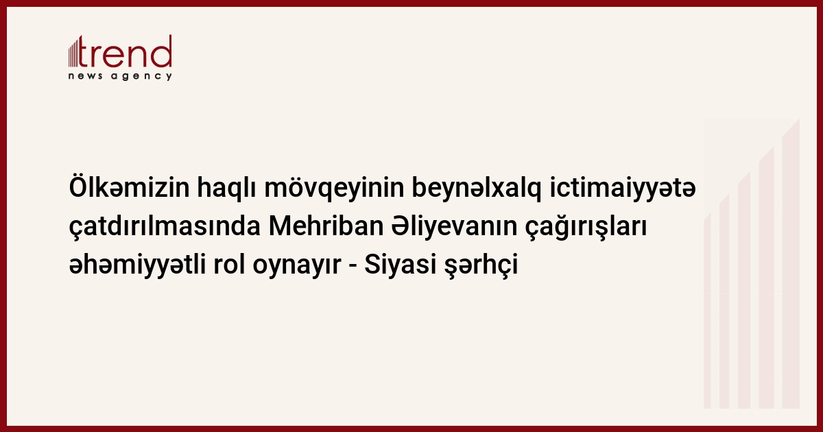 E.Mirzəbəyli bildirib: “Fikrimi əsaslandırmaq üçün Mehriban xanımın çağırışlarından bəzi iqtibasları təqdim etmək istəyirəm.