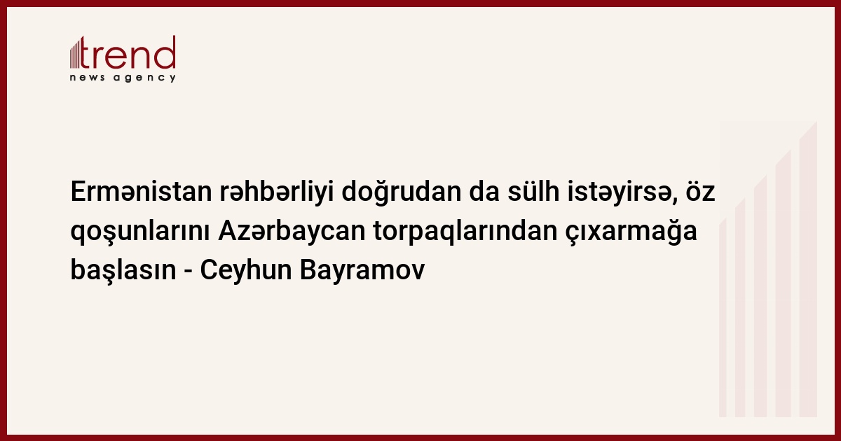 Bir daha təkrar edim ki, Azərbaycan tərəfinin başlıca məqsədi BMT Təhlükəsizlik Şurasının qətnamələrində, ATƏT-in qərarlarında nəzərdə tutulduğu kimi Azərbaycan Respublikasının suveren torpaqlarının işğalına son qoymaqdır. Ermənistan rəhbərliyi doğrudan da sülh istəyirsə, öz qoşunlarını Azərbaycan torpaqlarından çıxarmağa başlasın”.