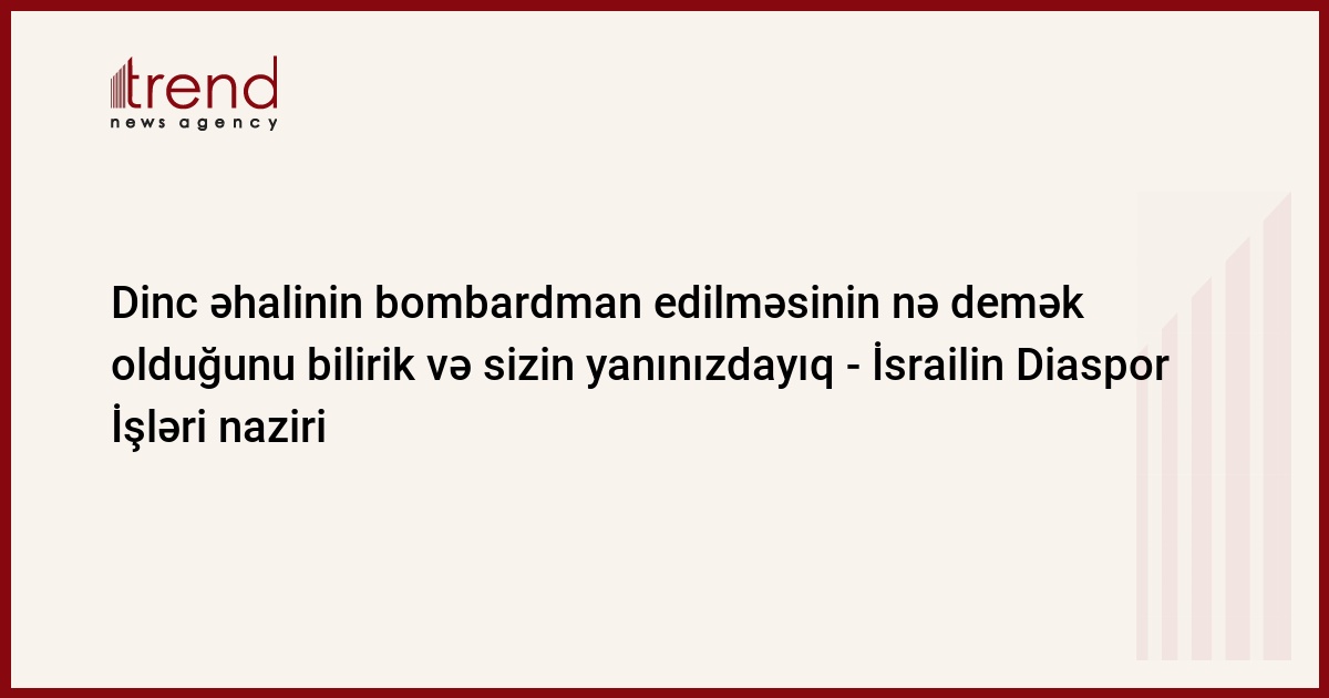 Trend-in məlumatına görə, bu sözləri Diasporla İş üzrə Dövlət Komitəsinin sədri Fuad Muradov İsrailin Diaspor İşləri naziri Omer Yankeleviçlə keçirdiyi videogörüşdə deyib. Görüşdə Bakıdakı yəhudi icması və İsraildəki Azərbaycan icmasının 100-dən çox üzvü iştirak edib.