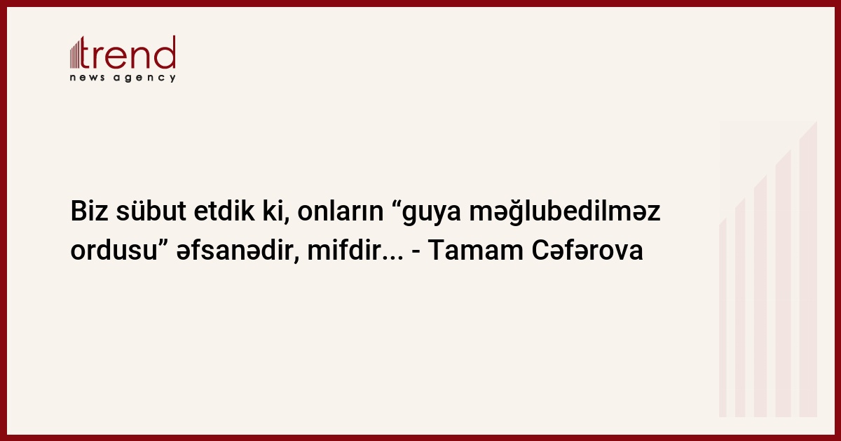 Sonda T.Cəfərova qeyd etdi ki, Ali Baş Komandan İlham Əliyevin komandanlığı ilə Azərbaycanın Müzəffər Ordusu onların “guya məğlubedilməz ordusu” əfsanəsini, mifini darmadağın etdi. Artıq onlar bu xülyadan oyanmağa məcburdurlar. Çünki, regionda yeni bir reallıq, yeni bir güc mərkəzi mövcuddur.