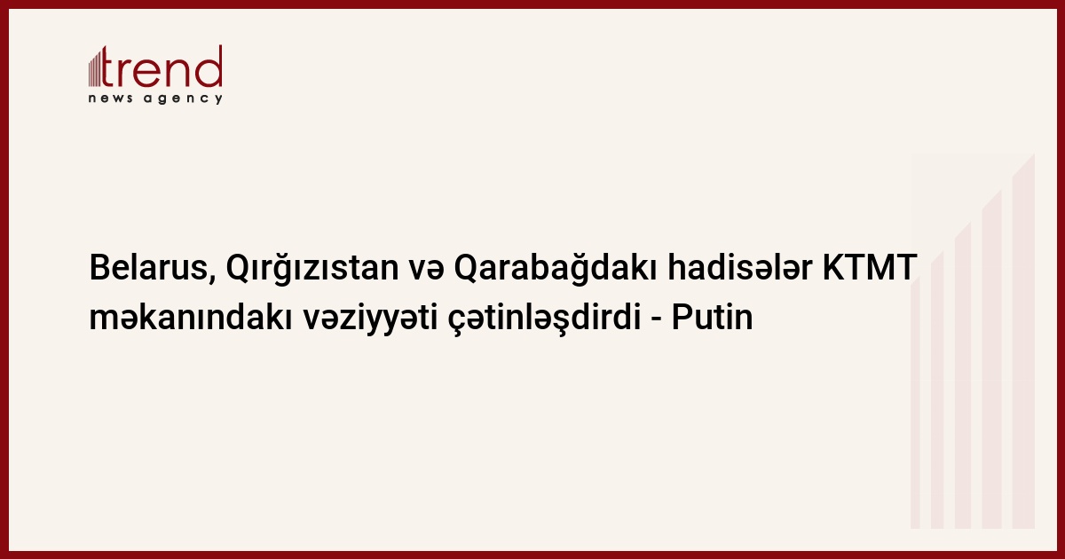 Belarus, Qırğızıstan və Dağlıq Qarabağdakı hadisələr Kollektiv Təhlükəsizlik Müqaviləsi Təşkilatı (KTMT) məkanındakı vəziyyəti çətinləşdirdi.
