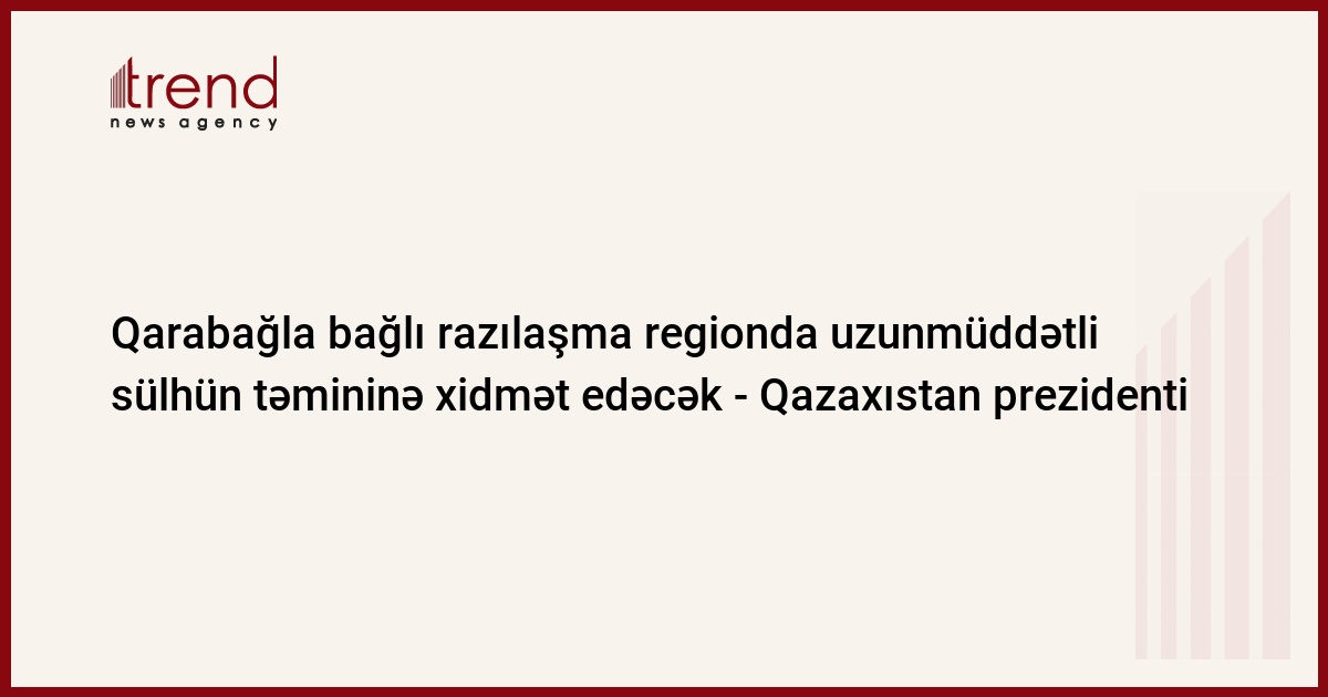 Noyabrın 10-da Qarabağla bağlı əldə olunmuş razılaşma regionda uzunmüddətli sülhün təmin olunmasına xidmət edəcək.