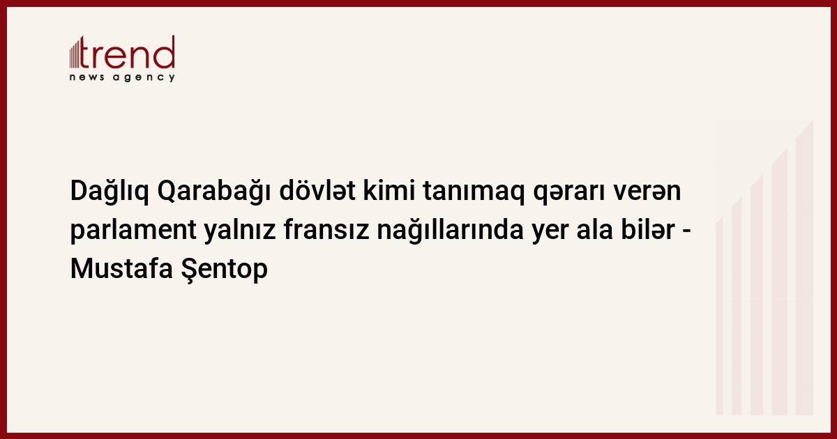 Trend-in məlumatına görə, bunu Türkiyə Böyük Millət Məclisinin sədri Mustafa Şentop Fransa parlamentinin qondarma “Dağlıq Qarabağ Respublikası”nı tanımaq barədə qətnaməni qəbul etməsini şərh edərkən deyib.