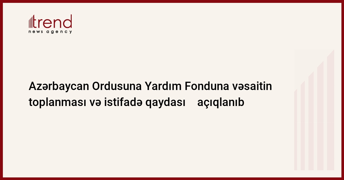 Trend-in məlumatına görə, bu Əsasnamə Azərbaycan Ordusuna Yardım Fondunun (bundan sonra – Fond) vəsaitinin formalaşdırılması, idarə olunması və həmin vəsaitdən istifadə ilə bağlı münasibətləri tənzimləyir.