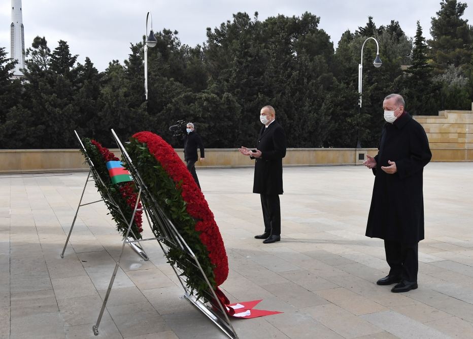 Azərbaycan Respublikasının Prezidenti İlham Əliyev və Türkiyə Respublikasının Prezidenti Rəcəb Tayyib Ərdoğan dekabrın 10-da Şəhidlər xiyabanını ziyarət ediblər.