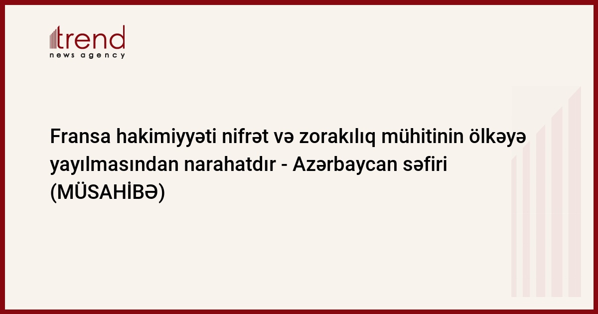 Azərbaycanın Fransadakı səfiri Rəhman Mustafayev Trend-ə müsahibə verib.