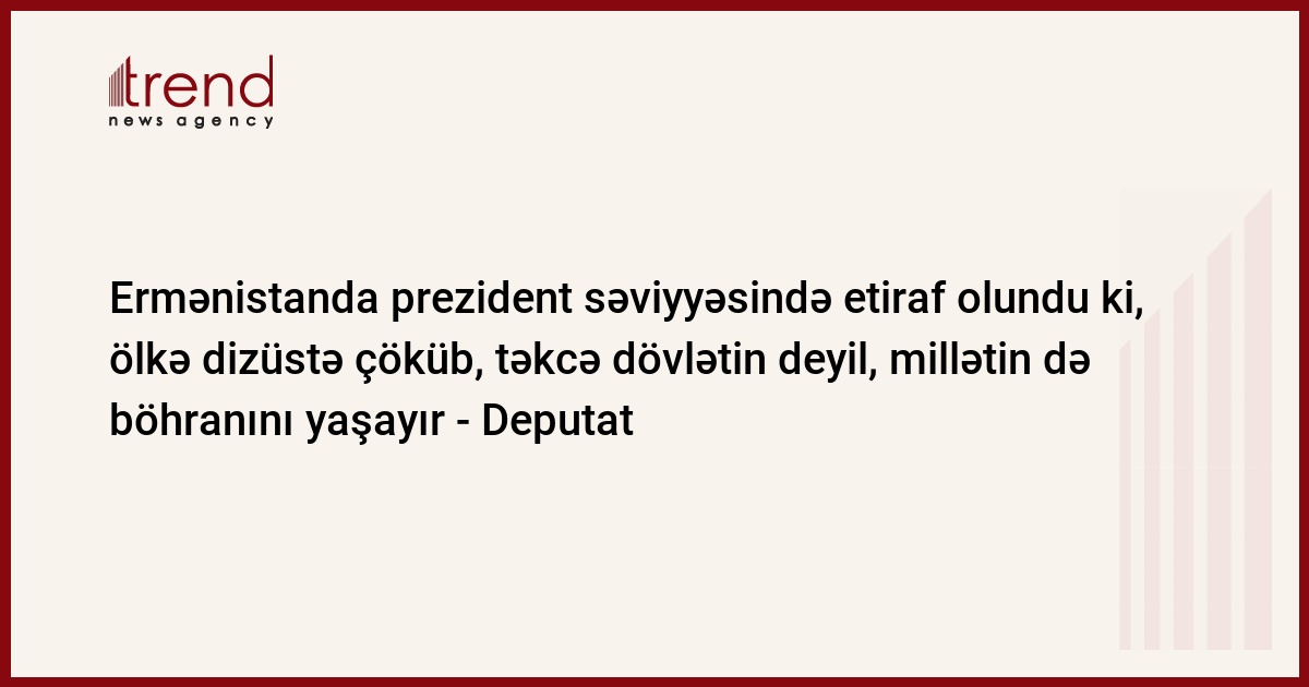 Erməni mətbuatında Paşinyan və komandasının işğalçı dövləti hansı fəlakətlərlə üz-üzə qoyması barədə geniş fikirlərə yer verildiyini də deyən deputat bildirb ki, həmin yazılarda indiki hakimiyyətin 2,5 il ərzində ölkəni hansı vəziyyətə gətirməsi barədə nəticələr təqdim edilir: “Qeyd olunur ki, Paşinyan hakimiyyətinin fəaliyyəti nəticəsində ortada məğlub, dağılmış və fəaliyyət qabiliyyəti olmayan ordu qalıb. Eyni zamanda, bu müddət ərzində minlərlə ailə qazanc yerini itirib, iqtisadi tənəzzül dərinləşib, xarici borc 8 milyard dolları ötüb”.