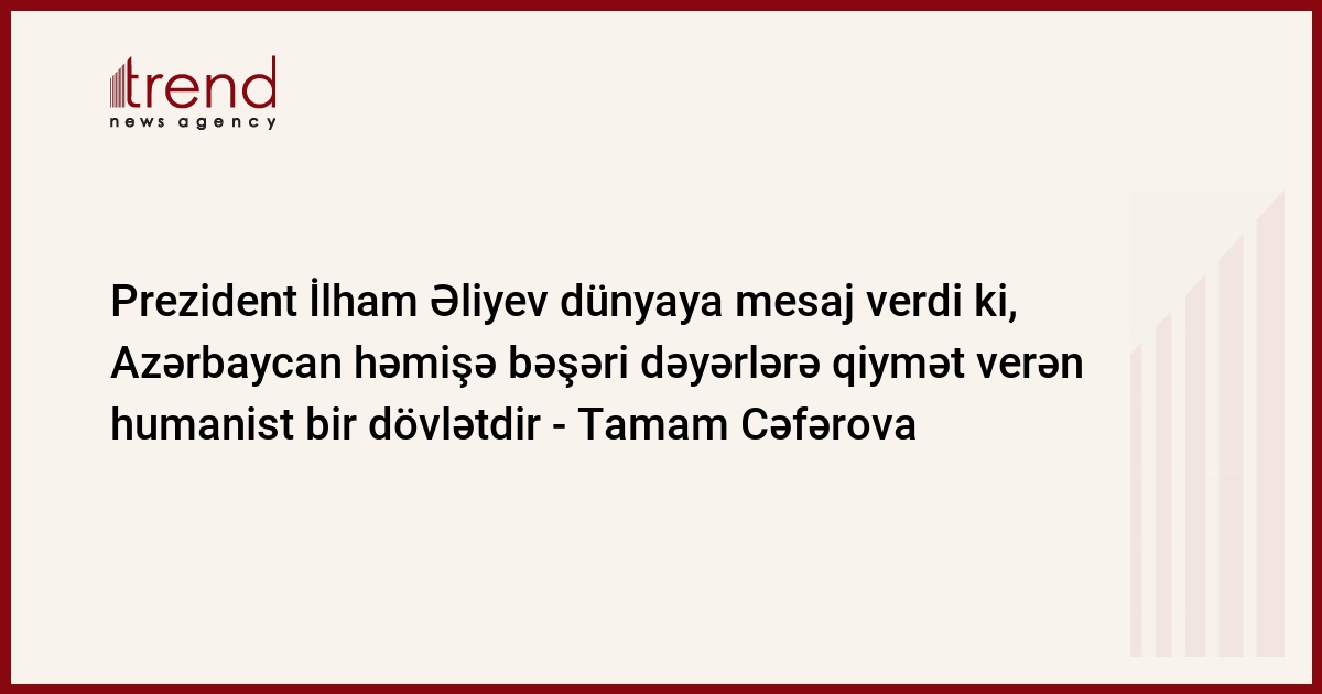 Bu sözləri Trend-ə Prezident İlham Əliyev və I vitse-Prezident Mehriban xanım Əliyevanın yanvarın 14-də Şuşa şəhərinə səfərini şərh edərkən Milli Məclisin deputatı Tamam Cəfərova deyib.