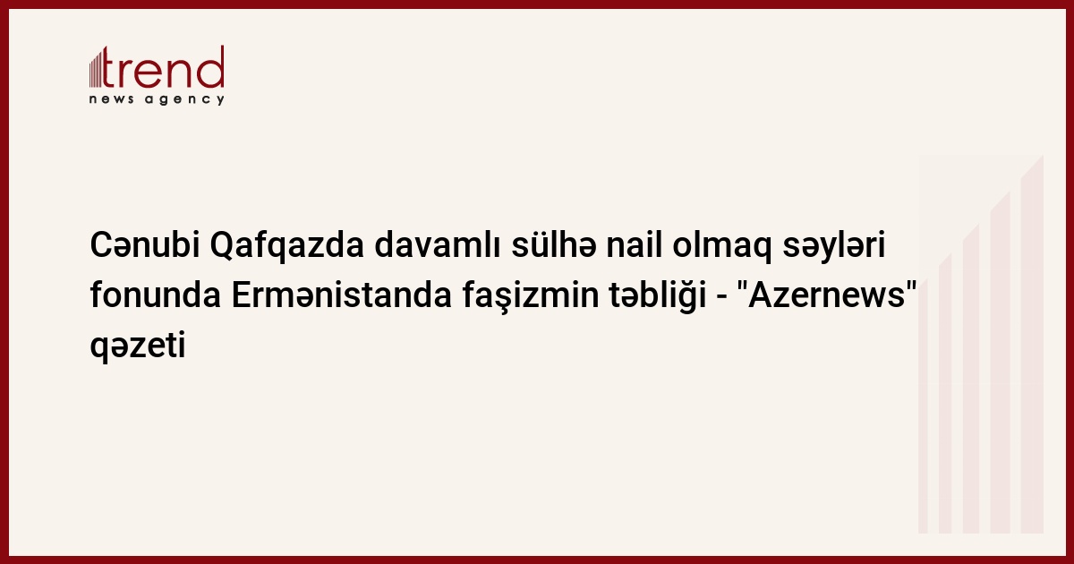 "Azernews" qəzetində çap olunan “Cənubi Qafqazda davamlı sülhə nail olmaq səyləri fonunda Ermənistanda faşizmin təbliği” adlı yazıda erməni cəmiyyətində faşizmin təbliğ olunmasından bəhs edilir.