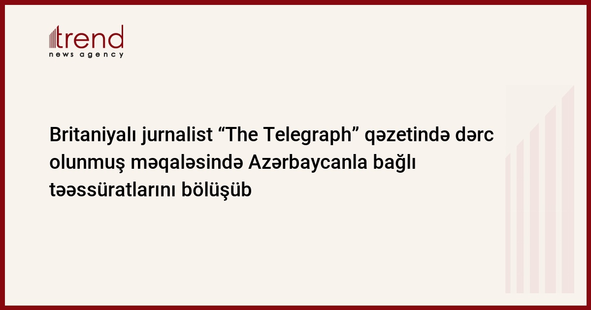 Trend xəbər verir ki, məqalənin müəllifi Ceyms Stivort Azərbaycana səyahət edərək ölkəmizlə bağlı təəssüratlarını bölüşüb.