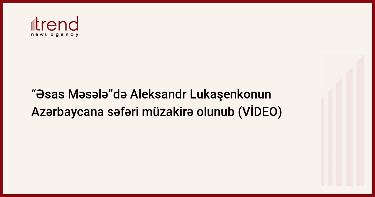 Trend xəbər verir ki, bu gün AzTV-nin “Əsas Məsələ ” verilişinin əsas mövzusu da işğaldan azad olunan ərazilərdə həyata keçirilən bərpa və yenidənqurma işlərinə tərəfdaş ölkələrin cəlb olunması məsələsi olub. Verilişin qonaqları Milli Məclisin deputatı Cavid Osmanov, Beynəlxalq Münasibətlərin Təhlili Mərkəzinin İdarə Heyətinin üzvü Esmira Cəfərova və politoloq Sahil İsgəndərov bildiriblər ki, Belarus Azərbaycanın ədalətli mövqeyini dəstəkləyir.