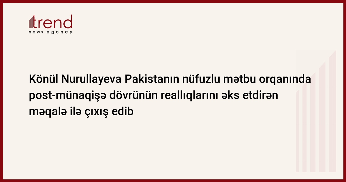 Millət vəkili Könül Nurullayeva Pakistan mətbuatında Qarabağ həqiqətləri, Ermənistanın müharibə cinayətləri və post-münaqişə dövrünün reallıqlarını əks etdirən məqalə ilə çıxış edib.
