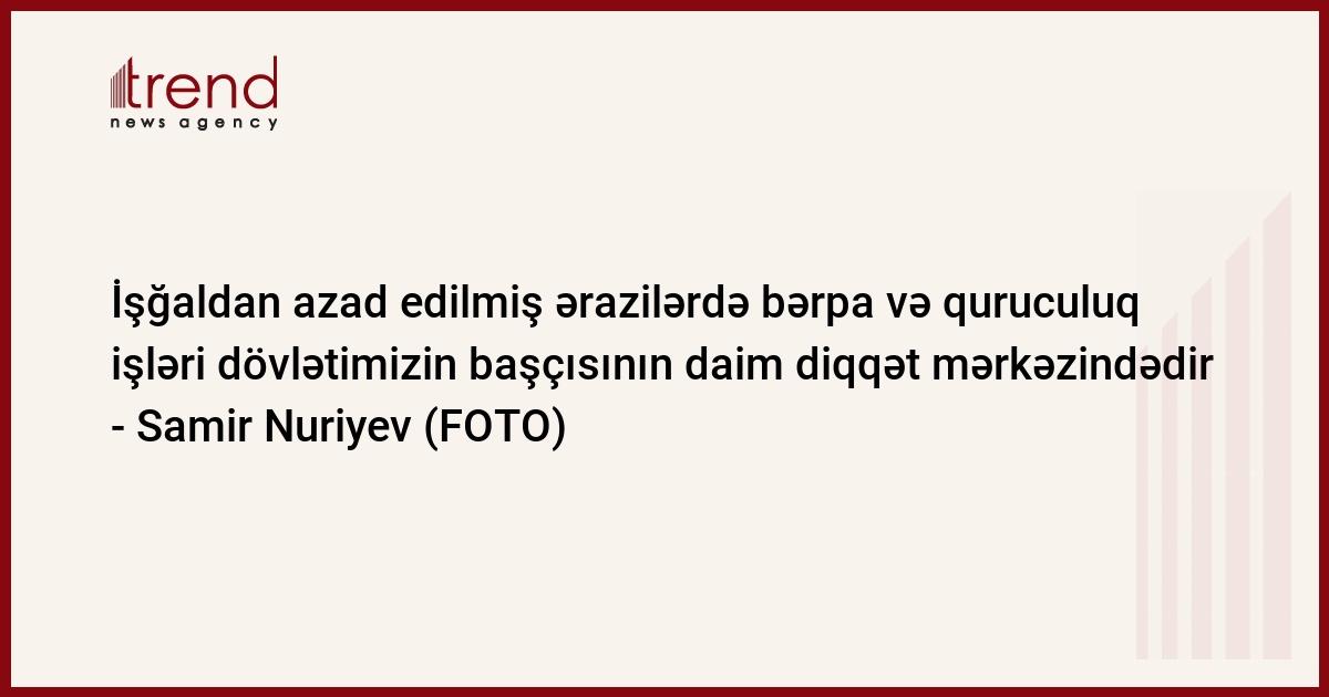 Trend xəbər verir ki, bunu İşğaldan azad edilmiş ərazilərdə məsələlərin mərkəzləşdirilmiş qaydada həlli üçün Azərbaycan Respublikası Prezidentinin 2020-ci ilin 24 noyabr tarixli Sərəncamı ilə yaradılmış Əlaqələndirmə Qərargahının videoformatda növbəti, 5-ci iclasında Prezident Administrasiyasının və Qərargahın rəhbəri Samir Nuriyev deyib.