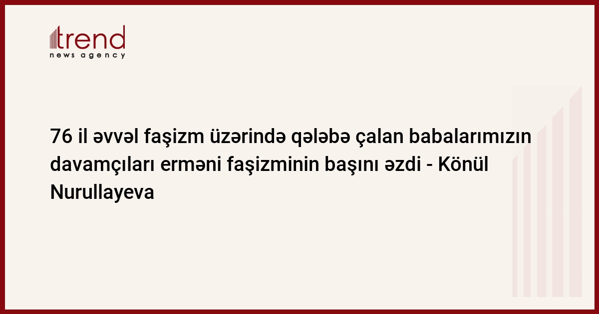 76 il əvvəl qəhrəmanlıq nümunəsi göstərən azərbaycanlıların davamçıları 30 illik işğalın aradan qaldırılmasında da eyni şücaəti göstərdilər. 76 il əvvəl faşizm üzərində qələbə çalan babalarımızın qəhrəmanlıq irsinin davamçıları 44 günlük Vətən müharibəsində erməni faşizminin başını əzdi, ərazi bütövlüyümüzü bərpa etdi.